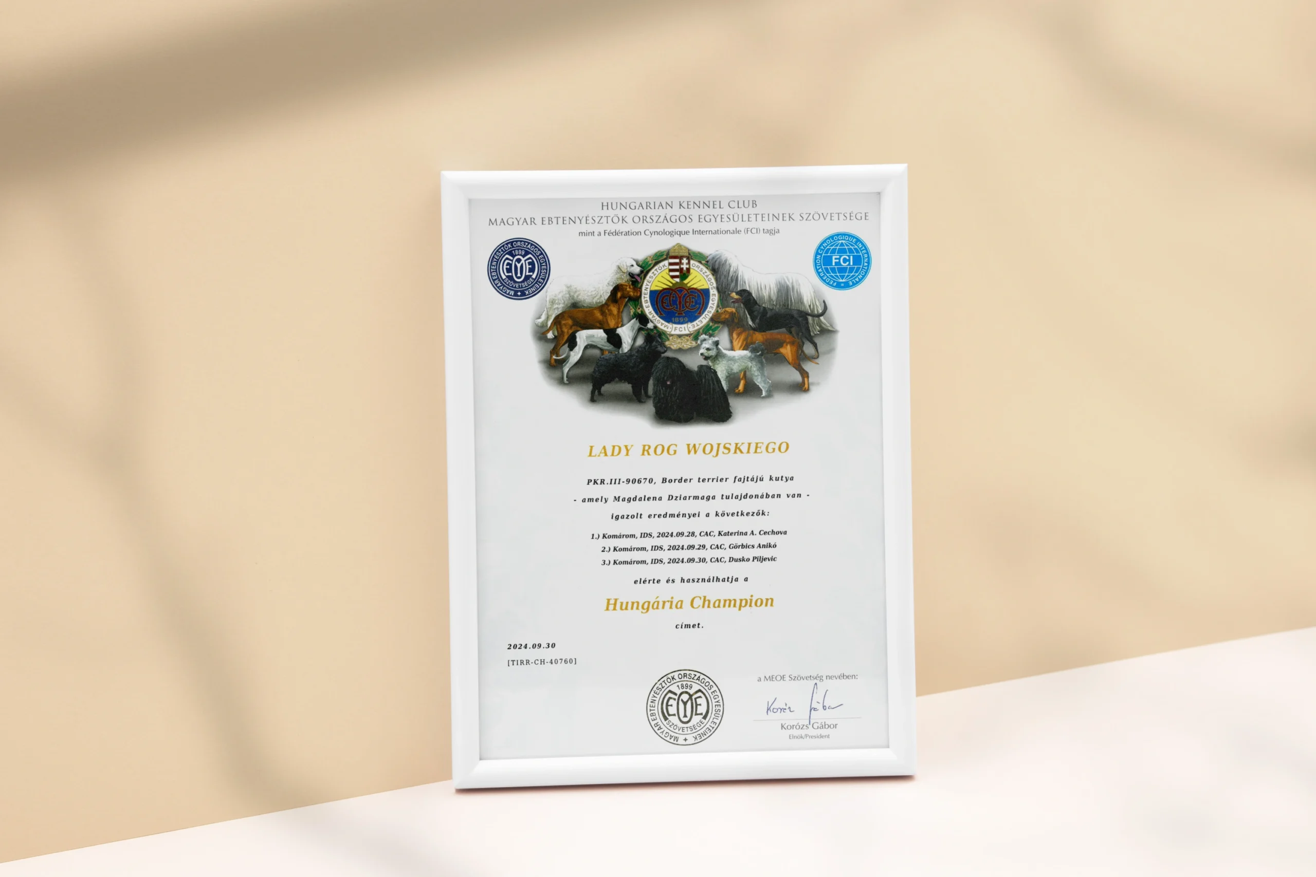 Rok 2024 rozpoczął się dla naszej Lady pasmem wielkich sukcesów. W ciągu zaledwie sześciu miesięcy zdobyła tytuł Grand Championa Słowacji oraz Championa Słowacji. Startując w 11 wystawach, czterokrotnie została uznana za Najlepszego Psa w Rasie (BOB), trzykrotnie za Najlepszego Psa Płci Przeciwnej (BOS), sześciokrotnie otrzymała CACIB i dziewięciokrotnie CAC. To naprawdę wyjątkowy początek roku! Dodatkowo miała zaszczyt startować wśród jedenastu najlepszych suk na najbardziej prestiżowej wystawie psów rasowych w Anglii – Crufts 2024.