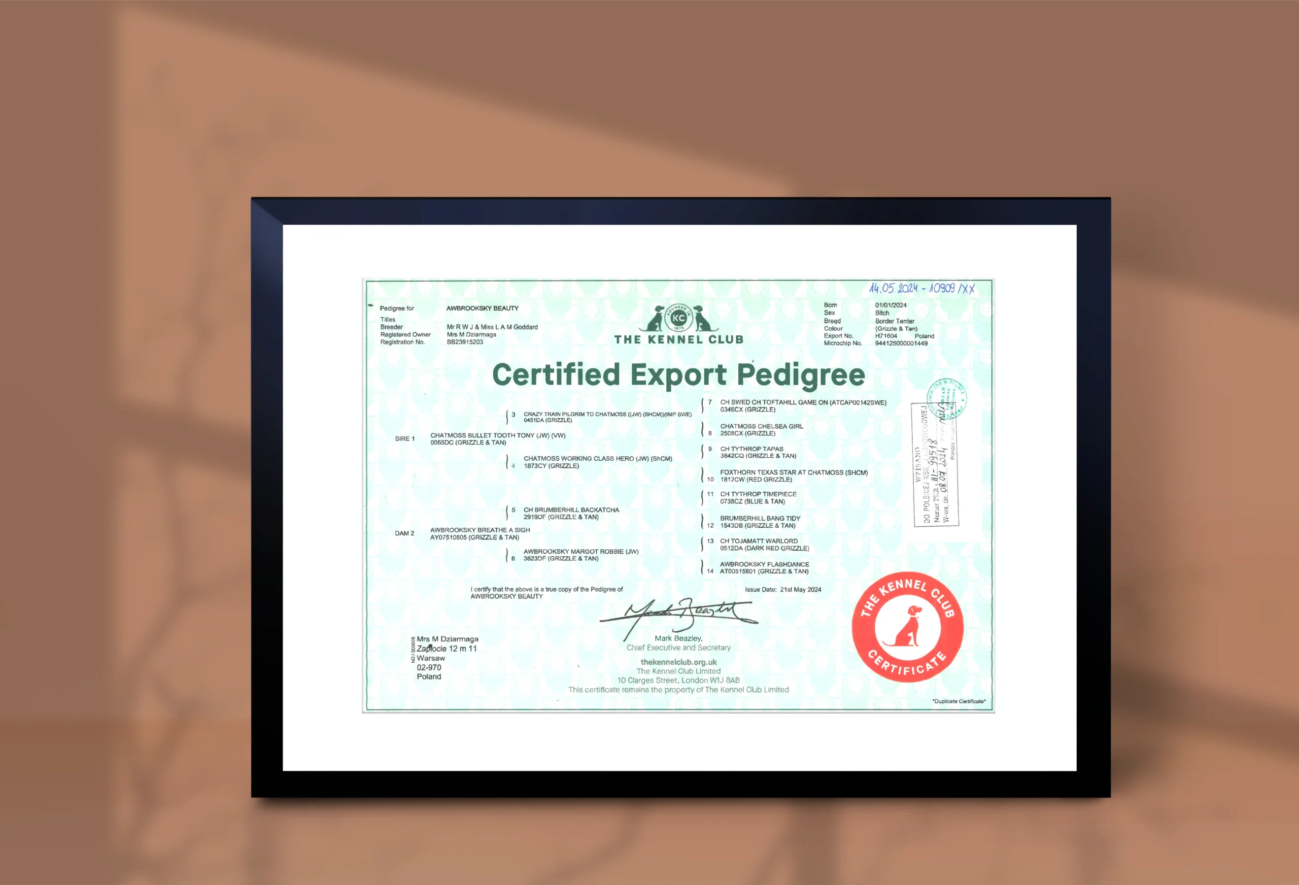 Rok 2024 przyniósł nam kolejne emocje związane z rasą Border Terrier. Do naszego domu trafiła wyczekiwana Beauty, nasza mała gwiazda pochodząca z renomowanej hodowli angielskiej. Jest typową przedstawicielką swojej rasy, łącząc w sobie wszystkie cechy, które czynią Border Terriery tak wyjątkowymi.